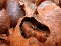 Abelhas sociais, bastante agressivas, cujos ninhos são encontrados em ocos de árvore. A entrada do ninho localiza-se no centro de estrias convergentes de barro e é possível que somente uma abelha passe de cada vez . Os favos de cria: podem ser helicoidais ou horizontais; não ocorrem células reais. O invólucro está presente e é bem desenvolvido nos favos de cria. Os potes de alimento apresentam de 3 a 5 cm de altura. (Nogueira-Neto, 1970).