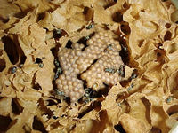 Espécie com ninho subterrâneo, ocupando panelas abandonadas de saúvas. Muito mansa, é bem comum, sendo freqüentemente encontrada nas flores. Seus ninhos são pequenos, com cerca de 1000-1500 abelhas. Os favos, sempre em espiral, são circundados por um invólucro. Células construídas em bateria, composta por até 26 células de cria nas colônias fortes. As células reais podem ser de dois formatos, um deles em forma de pêra e outro como as células normais, mas de maior tamanho. Às vezes duas células reais são construídas lado a lado. O favo de cria em construção é sempre o superior. As rainhas virgens andam livremente pela colméia, sendo encontradas ocasionalmente em repouso nos potes de alimento vazios. Machos formam grupos dentro da colméia, muitas vezes junto ao depósito de detritos da colônia, conspícuo.