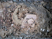 Os ninhos são encontrados EMdiversos lugares, utilizam desde árvores até barrancos, desde que os ocos sejam de tamanho apropriado e não aquecidos pelo sol em demasia (Nogueira-Neto, 1970). A entrada do ninhoé feita com própolis e é geralmente curta no exterior do ninho (Nogueira-Neto, 1970). As abelhas não fecham a entrada à noite (Nogueira-Neto, 1970). Favos de cria são horizontais ou helicoidais e ocorrem células reais (Nogueira-Neto, 1970). Invólucro presente nos favos de cria; construído com cerume (Nogueira-Neto, 1970). O tamanho das colônias é médio (Nogueira-Neto, 1970). As abelhas dessa espécie são inteiramente mansas (Nogueira-Neto, 1970). A construção dos favos de cria é suspensa no inverno ou em uma parte dele no Estado de São Paulo (Nogueira-Neto, 1970).